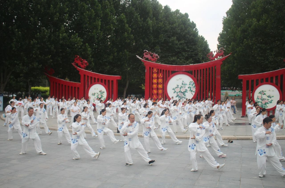 本次太极展演共有200多名教师,场面庞大壮观,气势恢宏?;疃殖?,伴随着悠扬的音乐,舒缓起手,舒展身体,开始精彩表演。