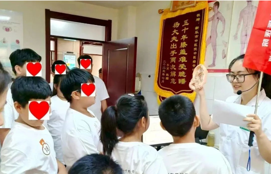 首日活动,孩子们便全方位沉浸在中医药的奇妙世界里。针灸科医师带领孩子们参观了艾灸、耳穴压豆、小儿推拿等中医非药物疗法展示区。中药师向孩子们介绍了怎样通过看、闻、触来辨识蝉蜕、陈皮、菊花等中药材的方法。中医文化长廊里展示的动植物中药材标本,古老的中医典籍,以及戥子、药碾等中医器具,让孩子们身临其境地体验到中医药学数千年的光辉历程。