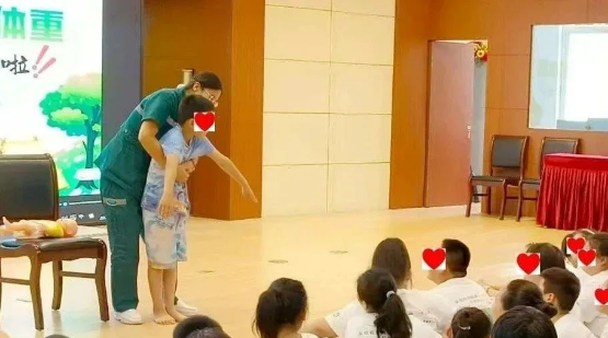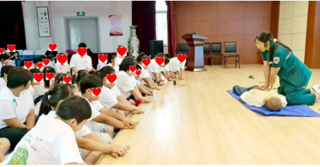120急救医生通过理论讲解与模拟演示,为孩子们介绍了心肺复苏术和海姆立克急救法的操作要点,提升了孩子们应对突发意外的自救互救能力。